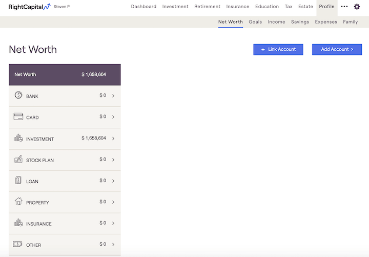 RightCapital pulls in household and investment account data and connects them with the client’s net worth. The positions will update Tuesday through Saturday morning with the previous night’s closing value.