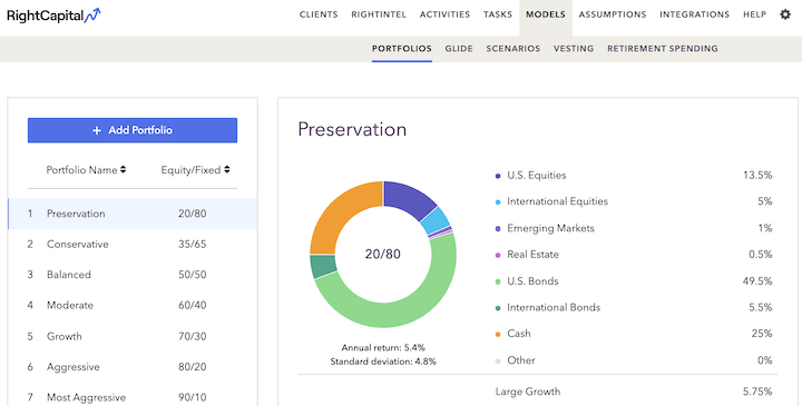Imported model portfolios and associated risk numbers can be deployed throughout the RightCapital platform and across the financial planning process. The following modules feature Nitrogen imported portfolios prominently: