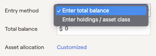 - When using "Enter holdings / asset classes" method there are two ways of indicating the account’s value: