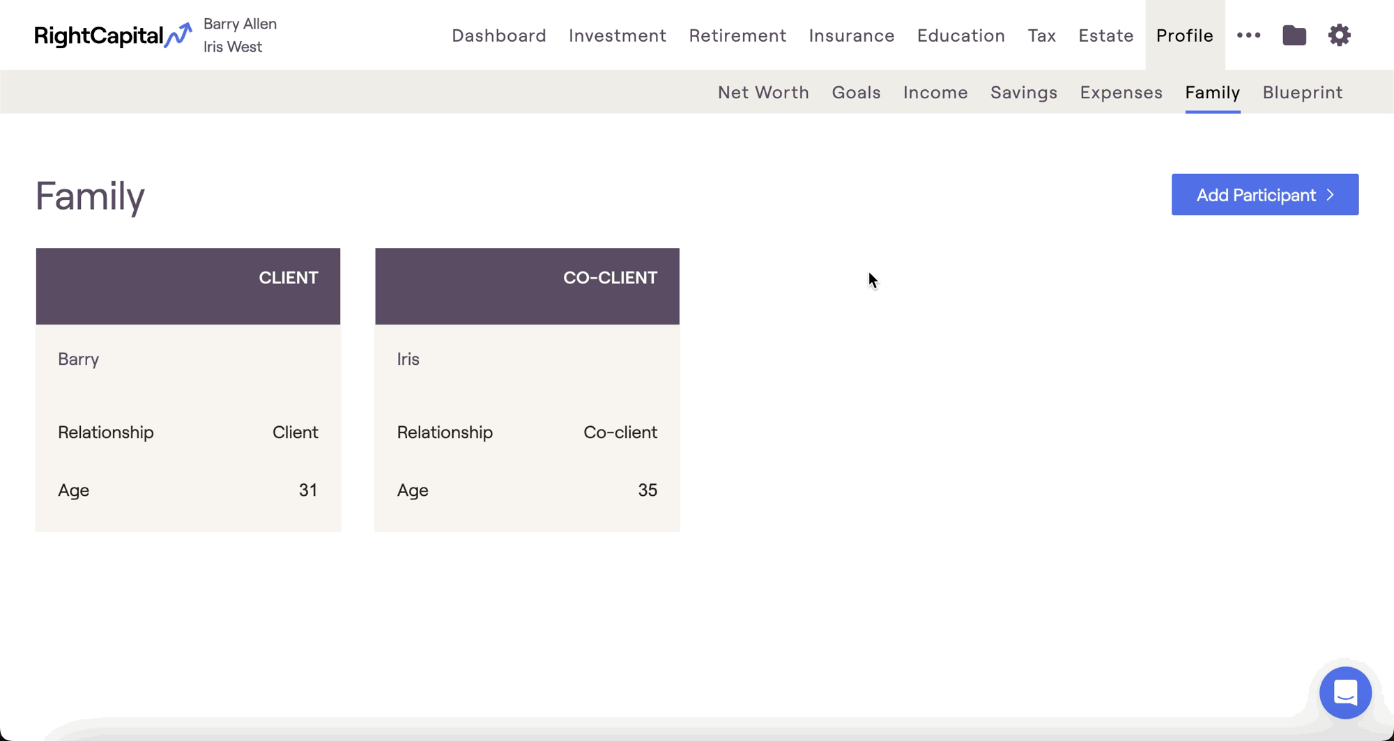In RightCapital, child benefits are automatically calculated and applied when there is a minor, dependent child included in the plan. To add a child as a participant in the plan, navigate to the Profile > Family tab (or Step 1 of the initial data entry) and click Add Participant > Child. Within the Child card, make sure ‘Yes’ is selected in the 'Dependent?' dropdown (this is the default option):