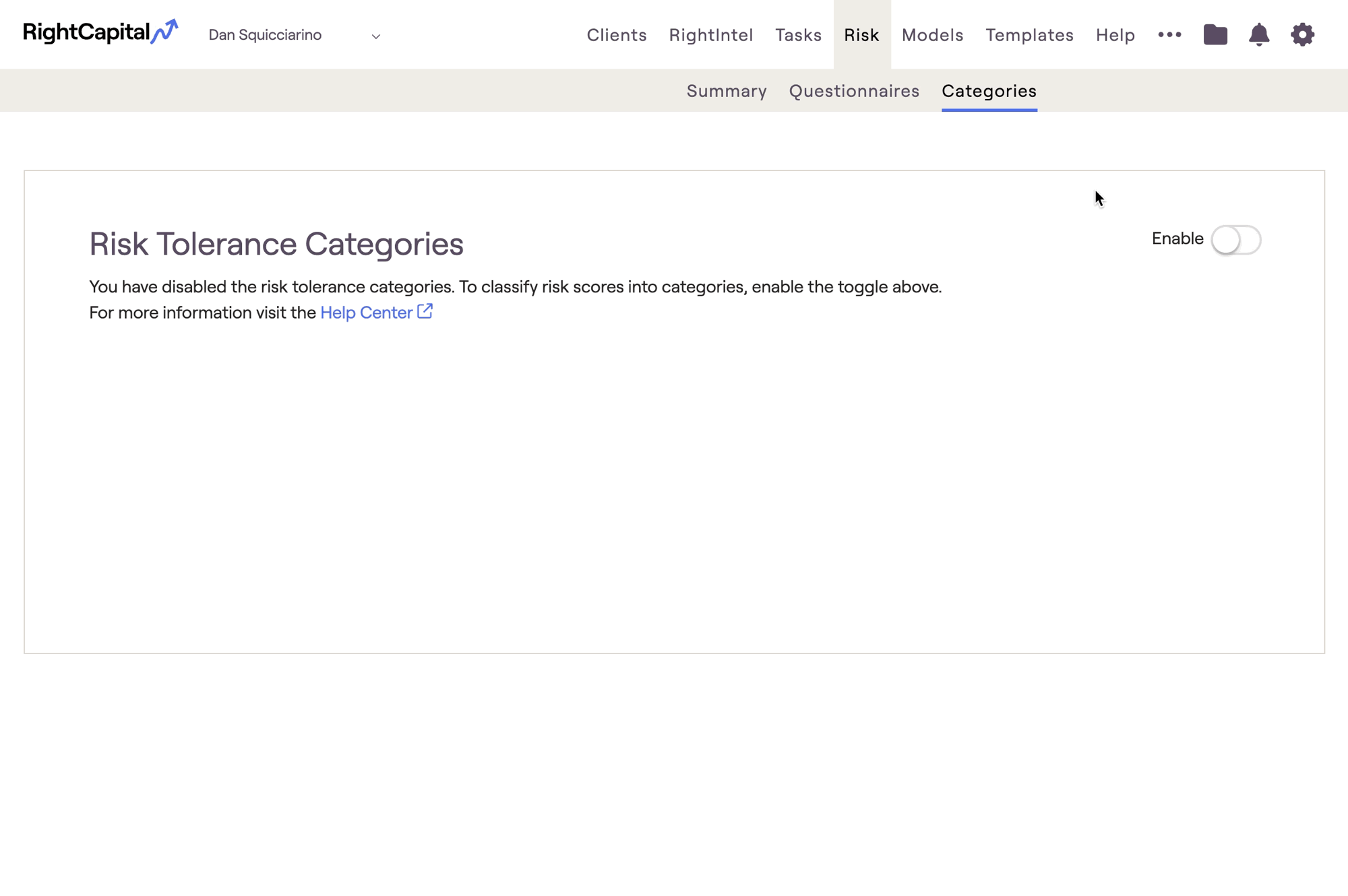 - Enable, create, and customize your own Risk Tolerance Categories in the Advisor Portal > Risk > Categories tab.