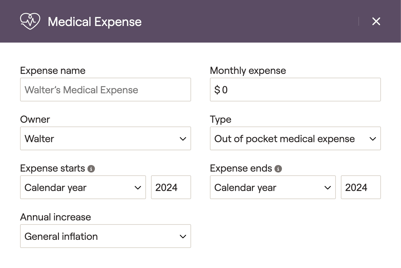 Please be aware that there is a separate card in the Profile > Goals section for Retirement Health Care Costs, which is primarily used to model Medicare expenses.