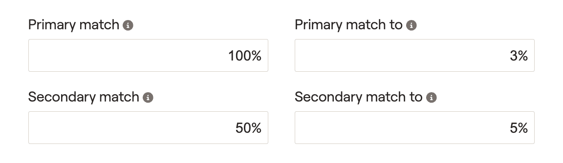 For non-elective employer matches, you can skip the primary and secondary matches and instead enter a Flat percent match or a Flat dollar match. These will occur regardless of employee contributions.